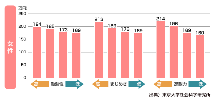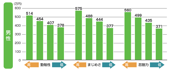 東京大学社会科学研究所が発表した調査結果では、真面目さが最も高い男性グループと最も低い男性グループを比較すると、平均年収でなんと198万円の差があることが判明したのです。