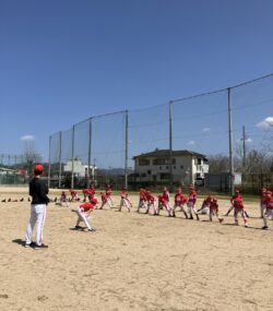 年長のお子様は小学校へ、Teeボールから軟式ボールらへレベルアップです!