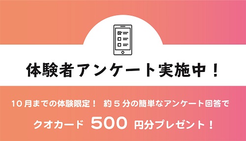 10月末までの体験限定!簡単5分のアンケート回答でクオカードプレゼント!